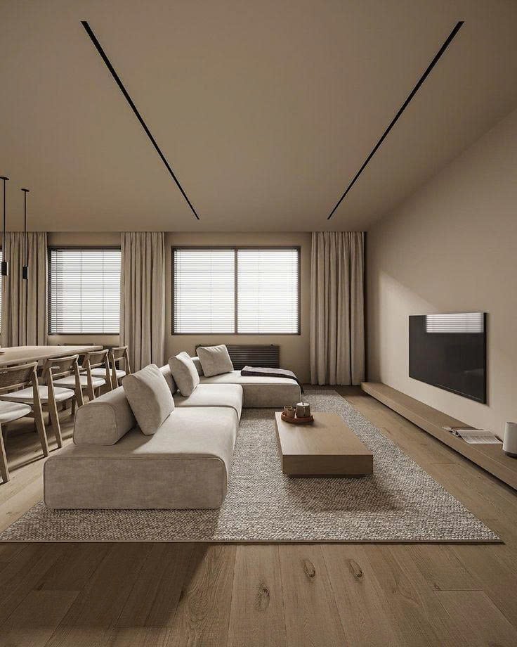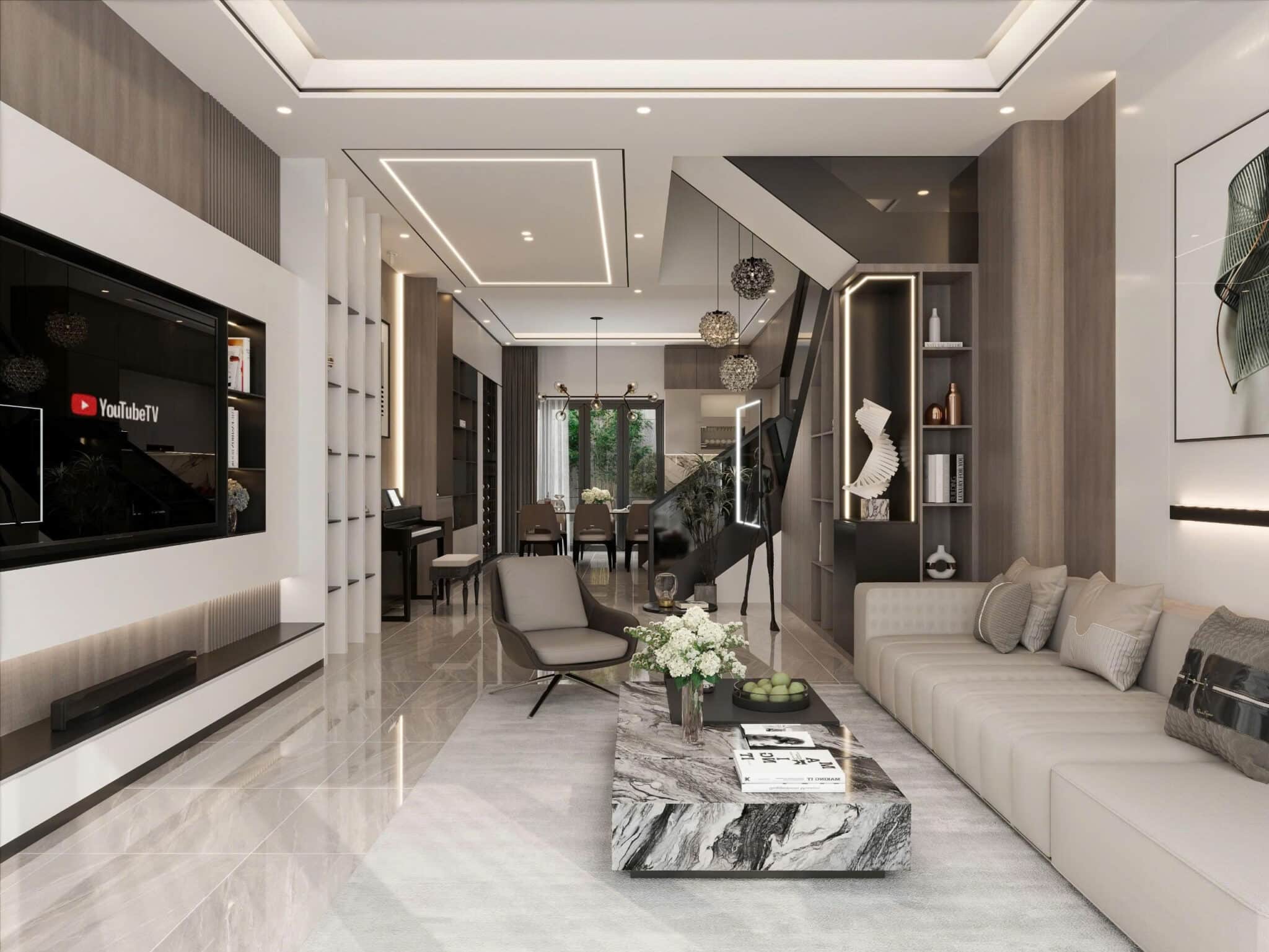 Phong cách thiết kế nội thất hiện đại chú trọng công năng và sự tối giản, với đường nét gọn gàng, màu trung tính như trắng, xám, đen. Vật liệu phổ biến gồm kim loại, kính, gỗ công nghiệp. Không gian tận dụng ánh sáng tự nhiên, mang lại cảm giác rộng rãi, sạch sẽ.