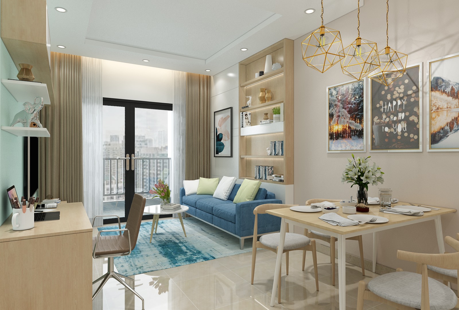 Hạng mục: Phòng khách, bếp và 2 phòng ngủ