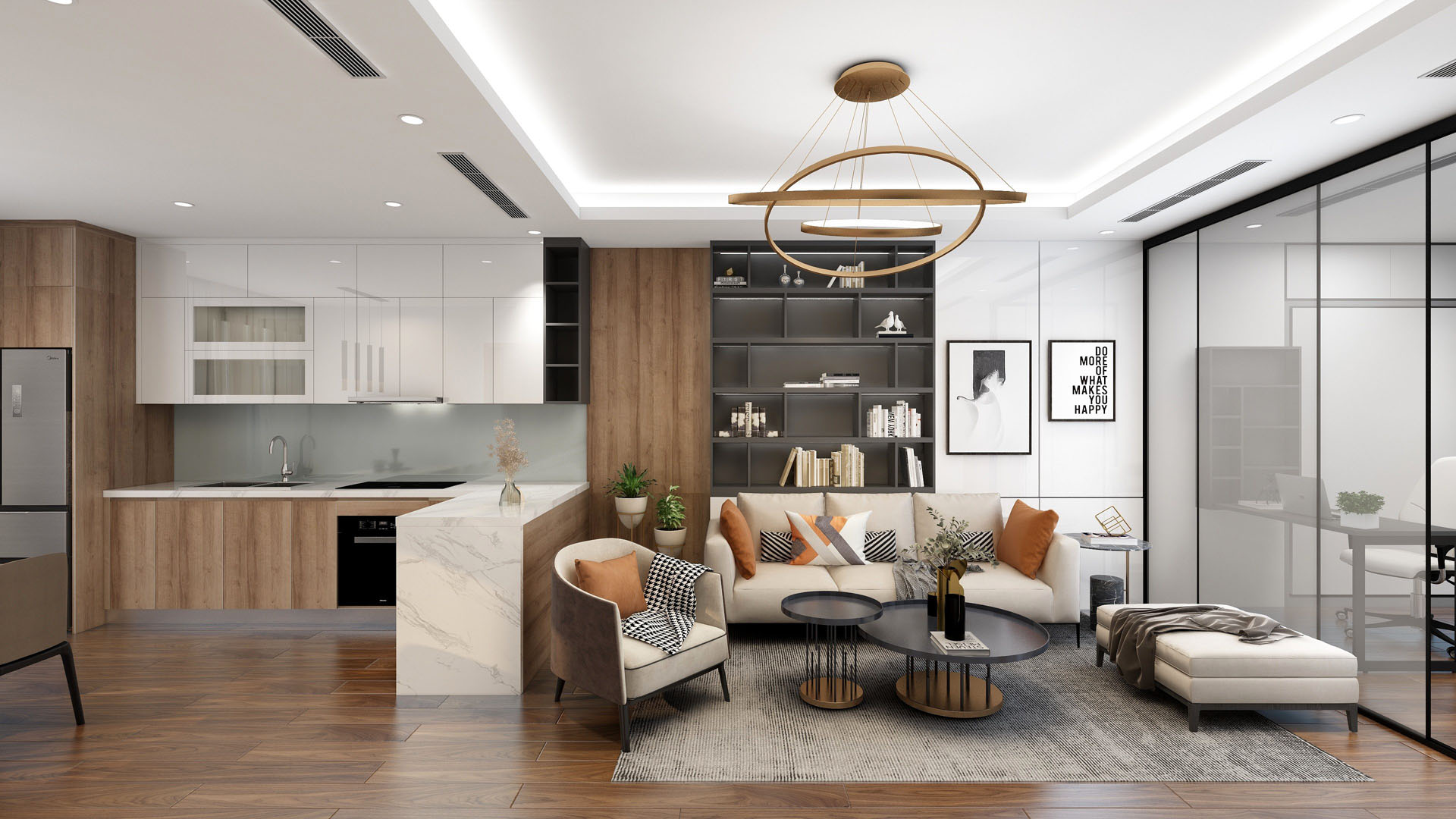 Hạng mục: Phòng khách, bếp và 2 phòng ngủ